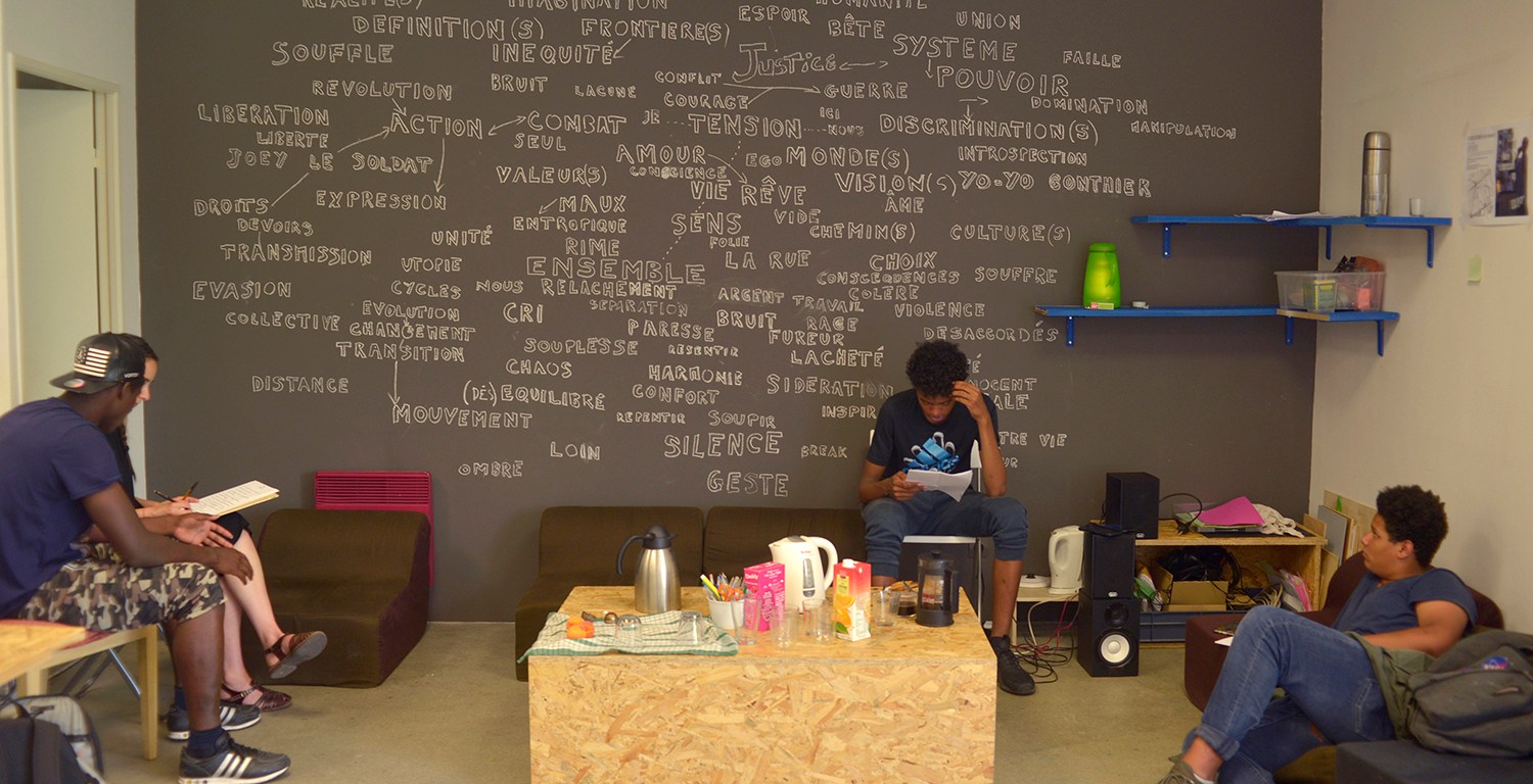 Image : « Les Mots qui touchent » workshop with Joey le Soldat and Yo-yo Gonthier, L’Atlas, July 2018. Photograph by Yo-yo Gonthier